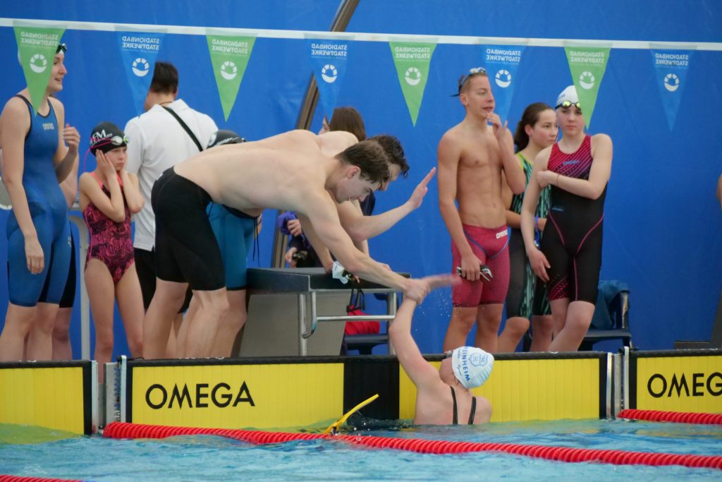 Bei den Starts wurde angefeuert was das Zeug hielt. Vor allem die verschiedenen Staffeln brachten die Halle zum Beben. Die 4x100m Freistil mixed Staffel (Florian Schneider, Moritz Schneider, Svea Brauch, Lena Otto) erkämpften sich samstags mittags mit ihrer Zeit von 04:06,34 den ersten Platz auf dem Podium. Nachmittags legte die 4x100m Freistilstaffel der Männer (Florian Schneider, Timm Toboldt, Yehor Holub, Moritz Schneider) noch einmal nach und belegte ebenfalls den ersten Platz, mit einer Zeit von 03:53,52.
