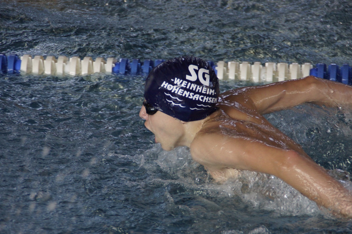 (Dossenheim) Ganz und gar nicht verschlafen präsentierten sich die Aktiven der TSG 1862 Weinheim am vergangenen Wochenende beim „late night“-Schwimmfest in Dossenheim. Die über 50 Weinheimer Teilnehmer zeigten sich von ihrer besten Seite und waren vorn dabei, sowohl, was die Medaillen anging als auch beim Sammeln persönlicher Bestzeiten. Besonders wertvoll waren die Medaillen in der offenen Klasse. Hier holte Elisa Schütz Gold über 50m Schmettern in 31,8 sek., ebenso wie Ruben Ried (34,8 sek. über 50m Brust) und Christian Ehmsen (1:08,4 min. über 100m Rücken). Silbermedaillen gab es für Elisa Schütz über 50m Freistil (29,7 sek.), Helen Klein über 100m Rücken (1:14,3 min.) und Ruben Ried (1:16,4 min. über 100m Brust). Fast alles mit Bestzeiten. In der Jahrgangswertung ab Jahrgang 2003 stand für die TSG dreimal Platz 1, zehnmal Platz 2 und siebzehnmal Platz 3 zu Buche. Stark verbessert (100m Freistil in 1:23,2 min.) und mit zweimal Gold und Silber präsentierte sich Mina Keck (2005). Mit vier Medaillen (100m Brust in 1:33,3 min.) und Gold über 50m Brust war auch Nils von Steht (2004) unter den Siegern. Zweifache Silbermedaillengewinner waren Florian Zaplatilek (2003) und Leonards Leoke (2004). Ebenfalls zweite wurden Fabienne Raaß (2004) und Tessa Rußmann (2005) und die 4x50m Freistilstaffel der Jungs mit Florian Zaplatilek (2003), Kai Wallenstein (2003), Moritz Schneider (2003) und Leonards Leoke (2004). Bronce sicherten sich Juliane Schnellbach (2003), Pauline Moders (2004), Amira Ehret (2004), Greta von Gudenberg (2004), Paula Meiertoberens (2005) und zweimal Henrik Bähr (2005). Und das Ganze natürlich mit vielen Bestzeiten. Sogar dreimal Dritte wurde Stine Hopp (2005). Neben den Medaillen gab es sehr viele bemerkenswerte Leistungen. Deutlich verbessern konnten sich bei den Jungs Benjamin Köhler, Albert Mass, Daniel Gugenheimer, Lenart Root Timm Toboldt, Till Nasgowitz, Moritz Schneider, Kai Wallenstein, Sebastian Bergmann, Louis Fuchs und Sebastian Bergmann. Bei den etwas älteren Semestern waren dies Julius Ott, Daniel Schüßler, Sven Silberzahn, Jonas Pascher und Raoul Ried, von denen keiner ohne mehrere Bestzeiten nach Hause ging. Ganz besonders zu erwähnen und die Leistungen von Florian Schneider (2000), der über die 50m-Strecken viermal seine Bestmarken pulverisierte (28,8 sek. über 50m Freistil) und von Finn Hopp (2002), der fünfmal schneller war (100m Rücken in 1:16,7 min.). Bei den jungen Mädchen war ebenfalls Bestmarken Sammeln angesagt. Hier beteiligten sich erfolgreich neben den bereits erwähnten Schwimmerinnen Luisa Kühn, Alisa Losmann , Daniela Tretjqk und Rebecca Margarit-Puri (alle 2002). beim Jahrgang 2004 waren dies noch Yella Bescher und Janina Rühle und außerdem noch Lara Hollmann und Louisa-Marie Pflästerer (2005) und Bianca Schüßler (2003). Im Aufwind waren auch Lena Angert (1999) mit 1:09,0 min. über 100m Kraul, Chiara Keil, Leonie Swart und Saskia Thielen (alle 2001), während für Bianca Schmitt und die de Angelo-Zwillinge diesmal keine Bestzeiten heraussprangen.