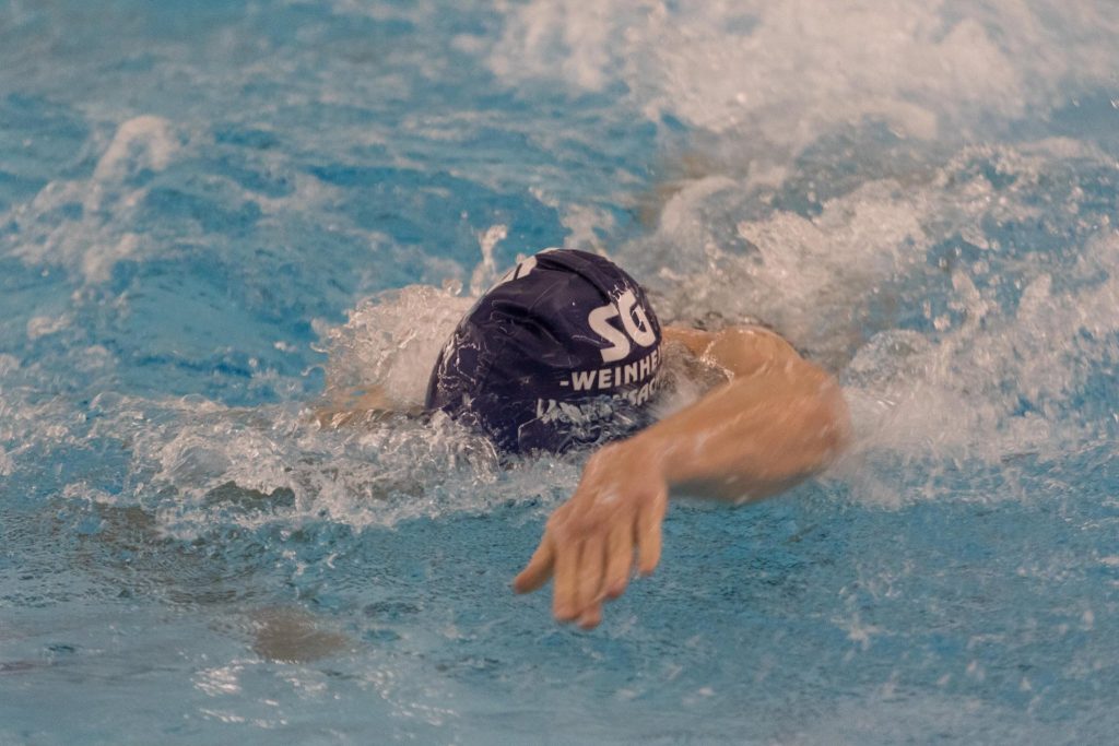 Weinheimer Delfin über 100 Meter. Ein ganz junger Schmettelingsschwimmer machte ebenfalls von sich Reden. Der 14-jährige Finn Hopp verbesserte sich zwei Mal auf 1:07,7 min. und 2:42,7 min. über 100 und 200 Metern.