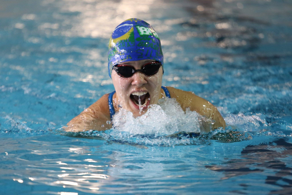 Weinheimer Schwimmerin. Fabienne Meyer war sechs Mal am Start und