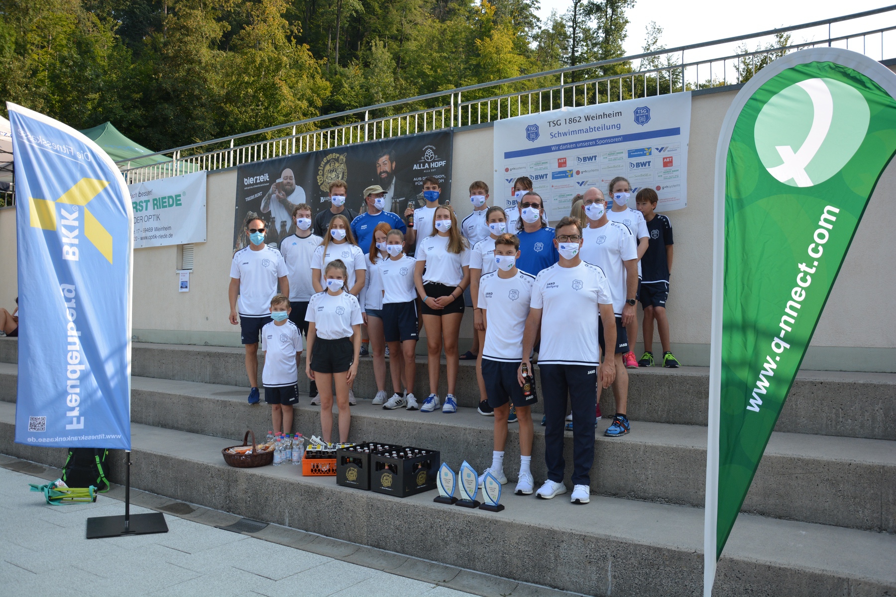 Am Samstag den 12.09.2020 veranstaltete die Schwimmabteilung der TSG 1862 Weinheim den ersten Wettkampf der neuen Saison 2020/2021 im Freibad im Gorxheimer Tal. Durch die bestehenden Corona-bestimmungen gab es natürlich ungewöhnliche Regeln für alle, wie 1,5 Meter Abstand und wenn dieser nicht eingehalten werden konnte, eine Maskenpflicht, sowie vorgegebene Plätze und Laufwege im Bad. Trotzdem waren alle Aktiven und auch die Kampfrichter diszipliniert und motiviert bei der Sache. Wie viele Schwimmerinnen und Schwimmer nach langer Abstinenz eine Wettkampfveranstaltung herbei-gesehnt hatten, beweist die nicht für möglich gehaltene Anzahl von rund 250 Teilnehmern mit knapp 900 Einzel- und 73 Staffelstarts. Besonders freute die Verantwortlichen um Abteilungsleiter Wolfgang Schneider, dass auch zahlreiche Vereine aus Hessen, Rheinland-Pfalz und sogar aus dem Saarland mit hochkarätiger Besetzung teilnahmen.